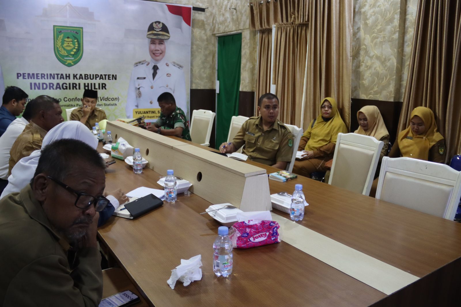 Bupati Inhil H. Herman yang berhalangan hadir, diwakili oleh Asisten I Sekretariat Daerah (Setda) Inhil, Fajar Husen. Kegiatan ini dilaksanakan dari ruang e-Bilik Diskominfopers Inhil, Jl. Alaska No. 2, Tembilahan.